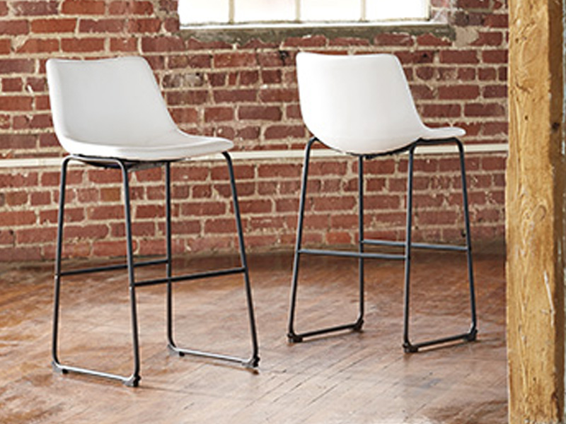 With its distinctive contoured bucket seat and tubular metal base, this bar stool serves up a fresh twist on mid-century inspired style. Faux leather upholstery has a charmingly vintage tone. What a timeless look for eat-in kitchens and casually cool dining rooms.