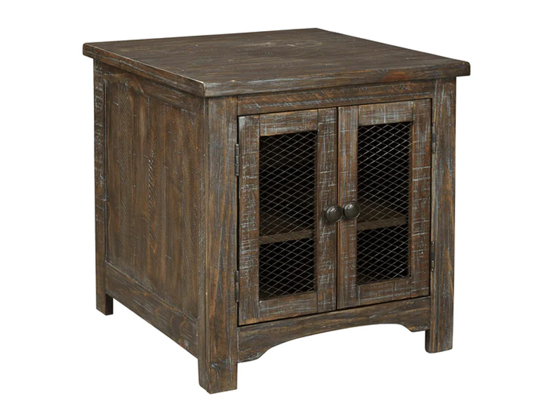 This end table is so much better for the wear. Its clean, straightforward profile is enriched with solid pine wood treated to a complex finish melding gray and brown hues. Cabinet doors with wire mesh front infuse a farmhouse fresh element that’s right on trend. Talk about loaded with charm and packed with possibilities.