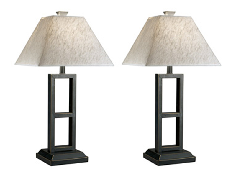 Open-ended style. This table lamp offers a strong linear design, with a rustic metal base softened by the textural waves of a chic linen-look shade. We love how the center cutouts keep these table lamps so light and airy.