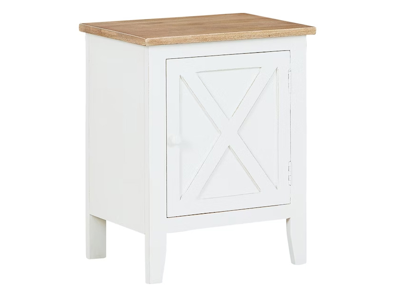 Achieving the vintage style you love is easier than ever with this accent cabinet. A simple storage solution, this accent cabinet also sports a crossbuck pattern door front. The cream and brown wood finishes along with the wooden door pull make for an accent cabinet that transforms your space in an instant.