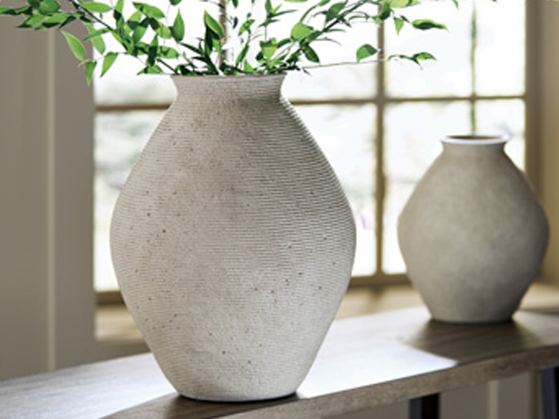 Ribbed textural rings give this vase a wonderful artisanal quality. An antiqued tan finish catches the eye, drawing attention to this elegantly fresh centerpiece.