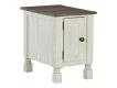 What a fresh interpretation of country classic style. Inspired by American farmhouse craftsmanship, but with an elevated sensibility, this chairside end table blends distinctive details such as turned post accents and raised door fronts for a substantial look that feels right at home. Those who appreciate rustic character should take note of the table’s thick crown moulding, beautified with a vintage two-tone finish. A small flip lid located on the top conceals a power outlet and USB ports to keep electronics charged up and close at hand