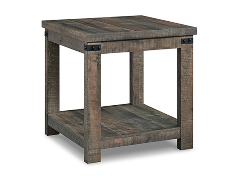 Keep your aesthetic chic and approachable with this charming end table. The piece has an effortless beauty, with a replicated aged barn wood pattern and matte black metal accents adding vintage-inspired elegance. Combining elements of fashion and function, the lower shelf is ideal for displaying decor or holding a storage basket.