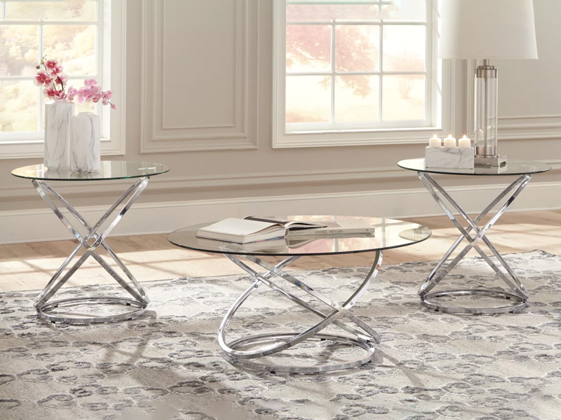 If you’ve been holding out for an ultra-contemporary look that’s delightfully unique, this round coffee table set is clearly worth waiting for. Chrome-tone metal rings are topped with clear glass with polished edges for a masterfully modern look with minimal fuss.