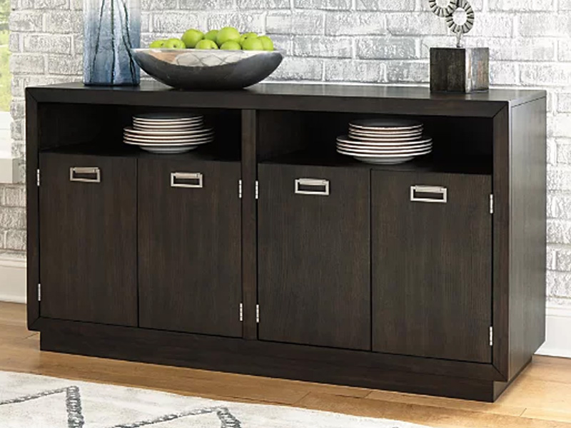 This versatile server serves up clean-lined, contemporary style with a sleek, linear profile and rich espresso finish. Fresh elements including open cubbies and roomy double door storage cabinets keep this piece relevant and on trend. Rest easy, this multifunctional server comes at such an affordable price.