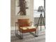 Less is so much more with this ultra-cool accent chair. A mastery in open-concept living, this chair with sturdy metal base is enriched with thickly cushioned velvet upholstered seats. Brown leather armrests are a strapping touch.