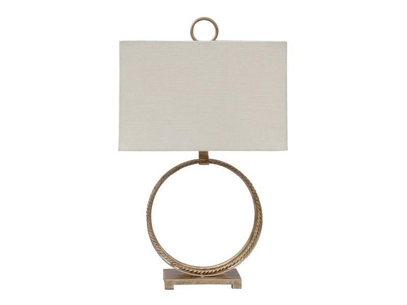 There’s something so elegant about this table lamp's rounded shape. Goldtone braided metal punctuates the less-is-more base for that touch of high drama lighting you crave.