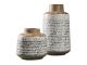 Two’s company with this 2-piece vase set. Its black line design is artistically looped with an organic sensibility. The contrast of the vase’s tan neck against the cream body speaks to your affinity for primitive decor.