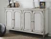 Put your love of shabby chic style on display with this wonderfully versatile cabinet. Adding to the charm of its distressed vintage paint finish: glass-inlay doors with a “free form” lattice design that’s delightfully different. Adjustable shelved storage is abundantly practical, be it in a dining room, living room or entryway.