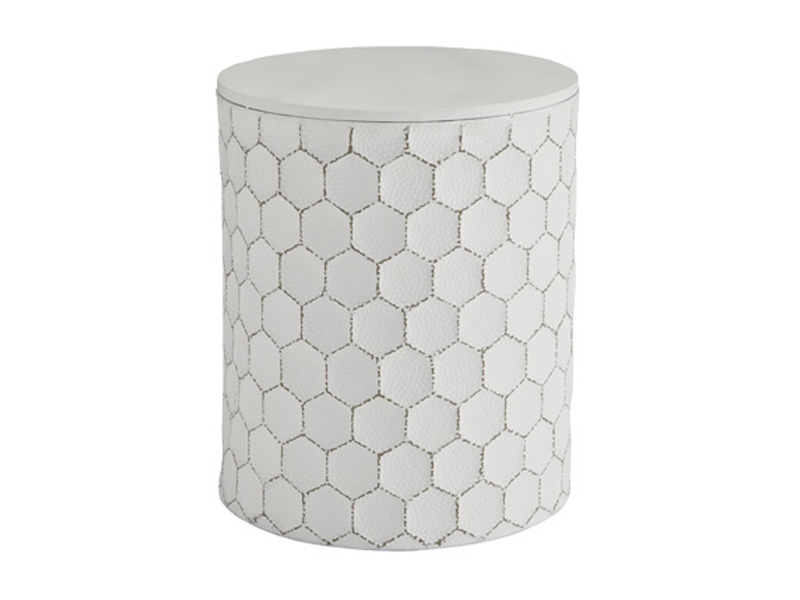 Trendsetting and contemporary. Take a fashion risk with this accent stool. Outlined honeycomb design on hammered metal is teeming with texture. Uniquely versatile size lets it serve as an accent table, plant stand or extra seating.