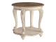 Elevating the art of traditional cottage styling, this round end table is sure to serve you beautifully for years to come. Antiqued two-tone aesthetic blends a chipped white with a distressed wood finished top for added charm. Classic cabriole legs and shapely lower shelf are a lovely twist. Decorative corbels add refinement.
