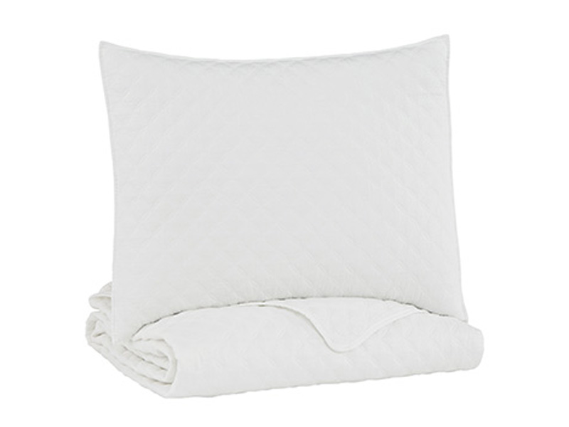 Relax and recharge with this coverlet set. Its quilted diamond design in white stonewash is a look that complements just about any decor style. With this coverlet’s casual-cool flair and soft feel, it’s sure to make jumping into bed your favorite part of each night.