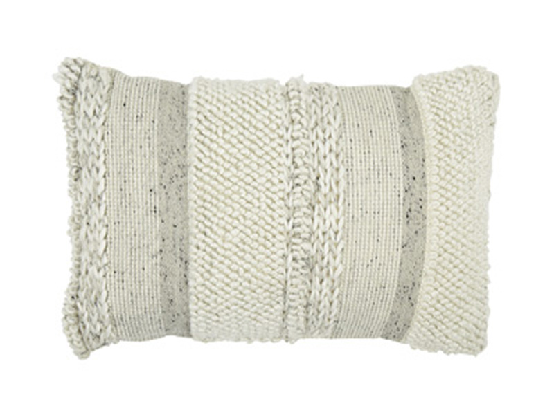 Teeming with tantalizing texture, this artful pillow is the epitome of casually cool design. Varying patterns and hues create an irresistibly charming look. What an effortlessly chic way to say, "Welcome home."