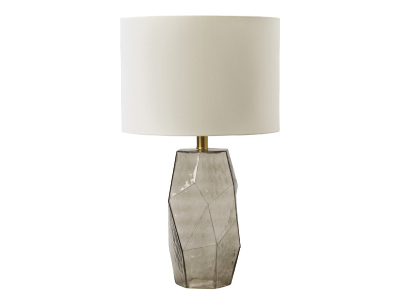 An elegant profile makes a simple yet stunning statement when viewed from any angle. This translucent glass table lamp, with its hexagon-shaped base, adds fluidity with a cool textured effect, providing an intriguing look for modern or transitional spaces.