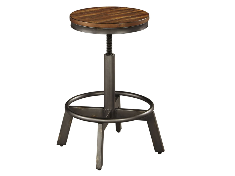Make your home the hub for cool vibes with this stool. Two-tone finish scheme of distressed warm brown and aged gunmetal is full of urban industrial swagger. Adjustable height is accommodating for you and your guests. Add it behind your sofa with a long counter table for a dapper eating or working space.