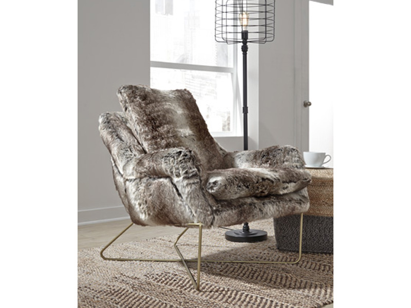 Taking cues from Scandinavian design, this contemporary accent chair welcomes you with open arms. Faux fur seat in shades of gray adds a layer of warmth and texture. Metal base is minimalistic in design but big on support. Grab a throw and cozy up.