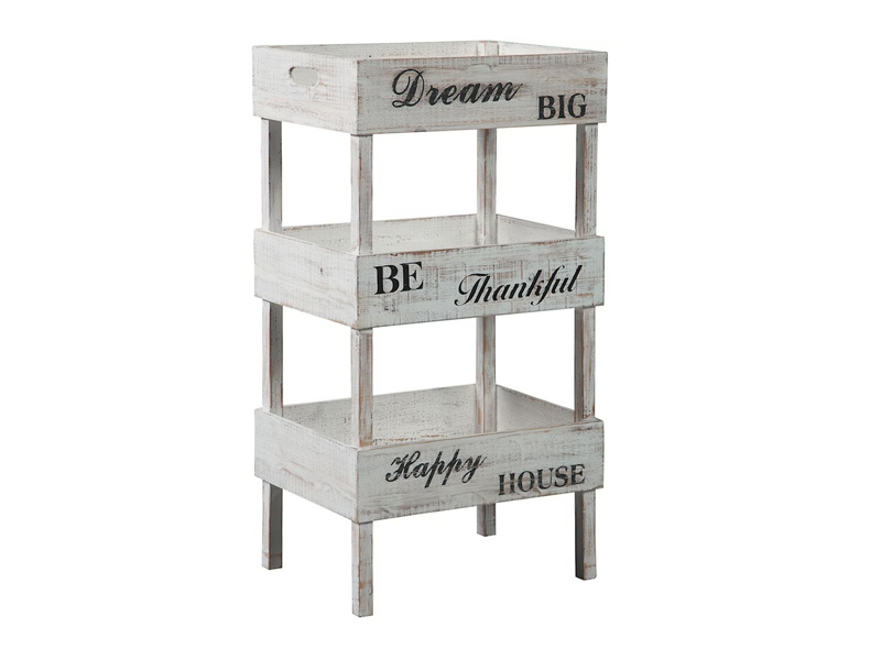 - Antiqued white finish