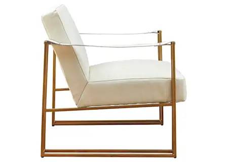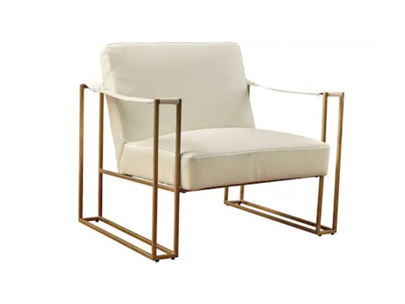 Less is so much more with the ultra-cool Kleemore accent chair. A mastery in open-concept living, this chair with sturdy metal base is enriched with thickly padded box cushions wrapped in a cream leather with ostrich patterned embossing. Leather armrests are a strapping touch.