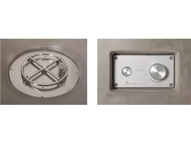 - Equipped with our new 60,000 BTU "Professional" burner system which includes a commercial grade burner, 12v (8X AA battery operated) push button ignition and a hi fidelity style control panel.