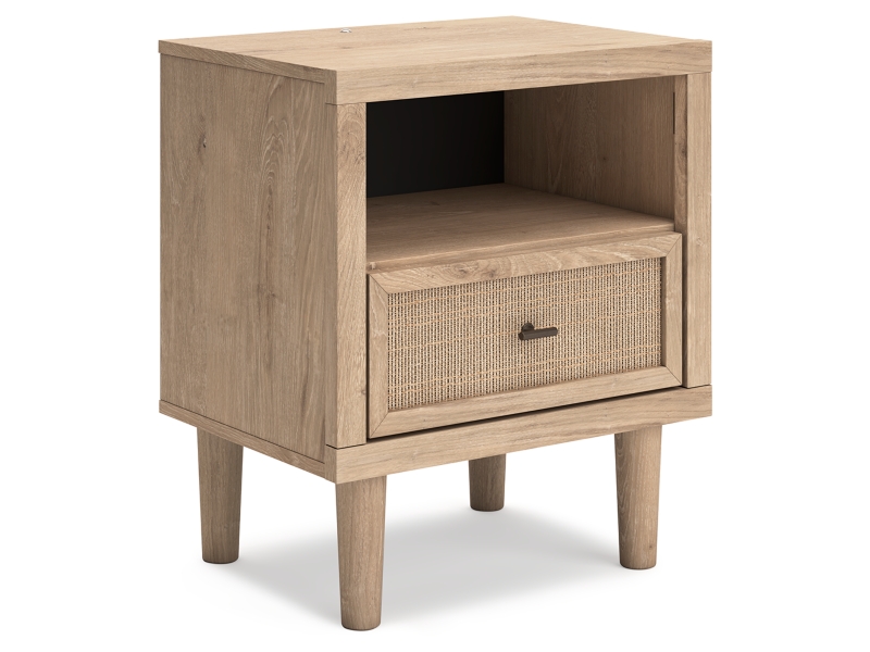 A mix of materials with dry, light finish with replicated oak grain and authentic touch and a replicated beige cane finish. Cases feature a framed front and pilasters, framed drawers with cane fronts and bronze color knob. Side roller glides for smooth operating drawers. Drawer interiors finished with a replicated linen design. Both USB and wireless charging options are provided with the nightstands. Nightstand is equipped with warm LED lighting at the base, offering three levels of brightness controlled by a touch button for a serene bedtime ambiance. Footboards (154,156,184) require the B100-12, B100-13 or B100-14 roll slats. Full (87), Queen (57) and king (58) headboards can attach to a bolt-on metal bed frame B100-21, B100-31 or B100-66 respectively. Mirror (36) has the versatility to be mounted on dresser or wall horizontally or vertically. Safety is a top priority, clothing storage units are designed to meet the most current standard for stability, ASTM F 2057 (ASTM International). Drawers extend out to accommodate maximum access to drawer interior while maintaining safety. Minor assembly required.