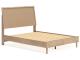 - Headboard panel with textured beige finish that replicates the look of cane