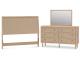 Clean-lined and contemporary—but far from stark—this bedroom package is a fresh style awakening. Pairing a light finish with replicated oak grain and textured beige cane details, its mixed materials bring a naturally versatile vibe to your bedroom. Sleek, simple hardware plays perfectly with the modern aesthetic.
