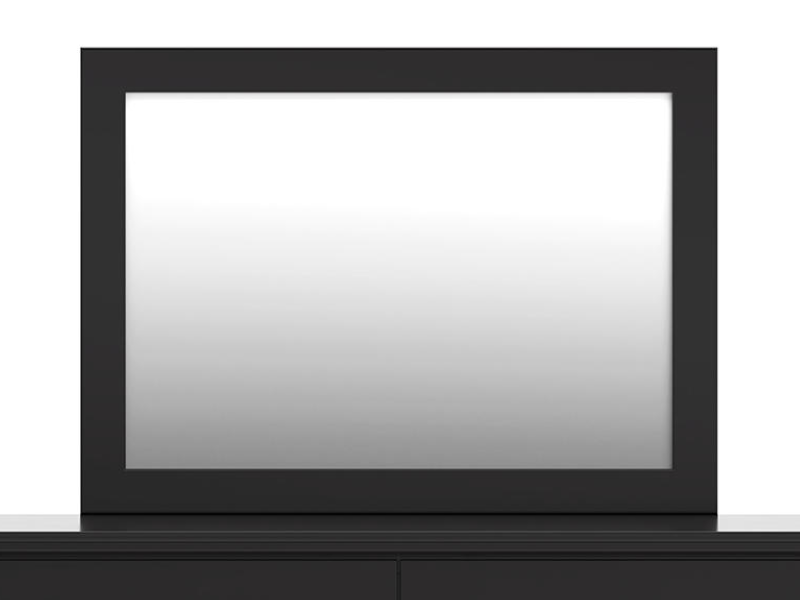 Solid black finish. Casual cottage design accented with pewter color knobs for a more urban look. Scalloped top and base mouldings add dimensional flare to case perimeters. Side roller glides for smooth operating drawers. Mirror (35) has the versatility to be mounted on dresser or wall horizontally or vertically. Safety is a top priority, clothing storage units are designed to meet the most current standard for stability, ASTM F 2057 (ASTM International). Drawers extend out to accommodate maximum access to drawer interior while maintaining safety.