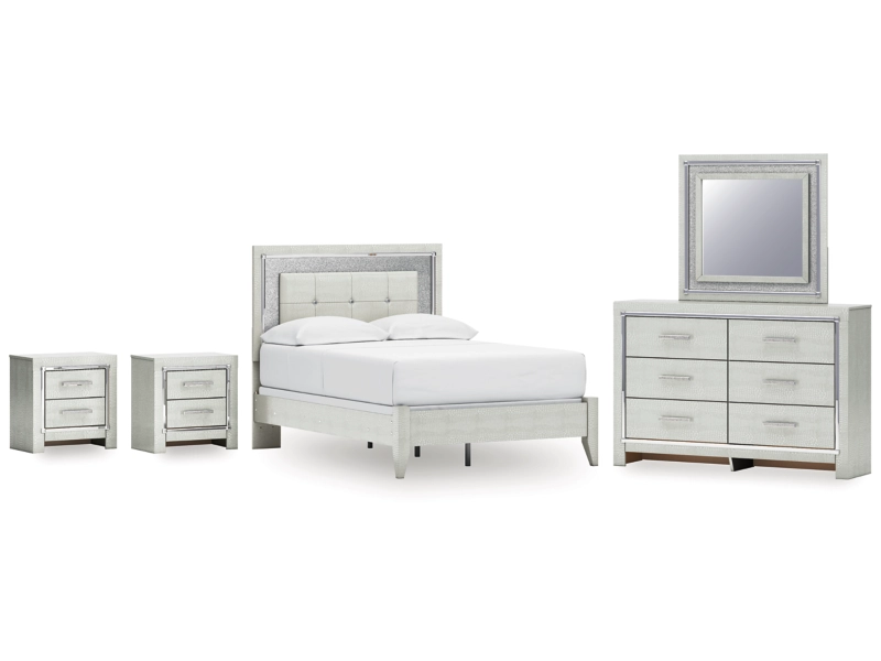 Signature Design by Ashley Zyniden Full Upholstered Panel Bed, Dresser, Mirror and 2 Nightstands - B2114B24