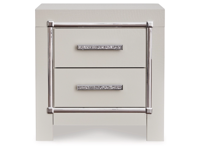 Bright, bold luxury. This bedroom package dazzles with its attention to detail. Your love of glamorous style is reflected in its all-over faux gator in a metallic finish, exquisitely paired with faceted chrome-tone details. With its opulent approach to bedroom style, this set inspires you to live luxuriously every day.
