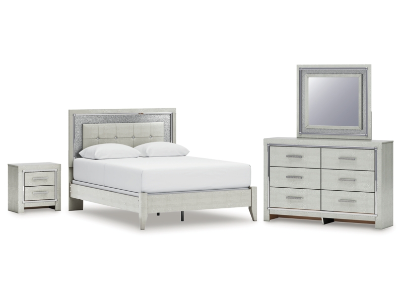 Signature Design by Ashley Zyniden Queen Upholstered Panel Bed, Dresser, Mirror and Nightstand - B2114B7
