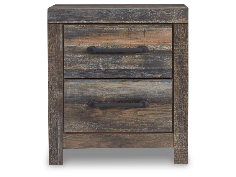 When merged in just the right way, rustic and industrial styles can make one happy marriage. Case in point: this bedroom package. A refined take on barn board beauty, its complex, replicated wood grain showcases hints of burnt orange and teal tones for a sense of weatherworn authenticity. Elongated metal drawer pulls elevate the aesthetic.