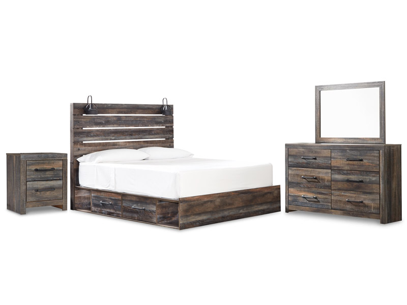 | Description | King Panel Bed with Under Bed Storage, Dresser, Mirror and Nightstand |