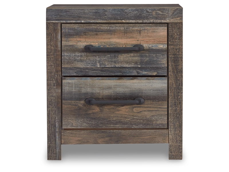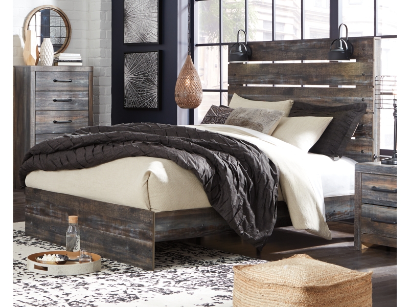 When merged in just the right way, rustic and industrial styles can make one happy marriage. Case in point: this bedroom set. A refined take on barn board beauty, its complex, replicated wood grain showcases hints of burnt orange and teal tones for a sense of weatherworn authenticity. Elongated metal drawer pulls on the case pieces elevate the aesthetic.