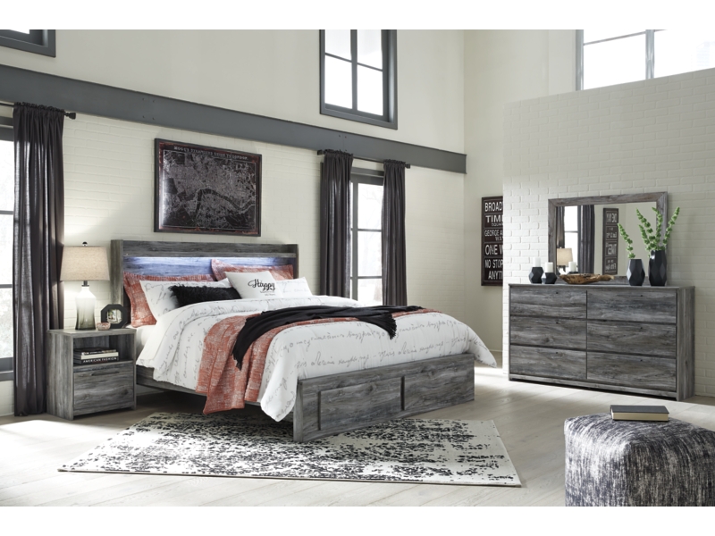 Signature Design by Ashley Baystorm King Panel Storage Bed with Mirrored Dresser and Nightstand - B221B36