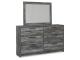 Reflect in the beachy style of this dresser and mirror set. Its driftwood and surfer-inspired smoky finish gives this set a rustic look that's perfect for setting the scene of an island getaway. Clean lines and modern handles on the case pieces combine for an authentic look to be admired for years to come.