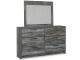 Reflect in the beachy style of this dresser and mirror set. Its driftwood and surfer-inspired smoky finish gives this set a rustic look that's perfect for setting the scene of an island getaway. Clean lines and modern handles on the case pieces combine for an authentic look to be admired for years to come.