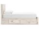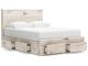 Rustic white finish over replicated reclaimed Oak grain with authentic touch. Cases feature a framed front and pilasters. Bed features a thick and heavy design. Contemporary handles in a dark pewter color finish. Side roller glides for smooth operating drawers. Drawer interiors finished with a replicated linen design. Slim USB charger located on the back of the nightstand tops. Queen (57) and king (58) headboards can attach to a bolt-on metal bed frame B100-31 or B100-66 respectively. Queen (57) panel headboard is capable of attaching a full sized metal bolt on bed frame. All storage footboards (54S,56S) require the B100-13 or B100-14 roll slats. Queen and king storage bed option features six drawers of storage. Headboards (57,58) are compatible with all footboard options (54,54S,56,56S). Mirror (36) has the versatility to be mounted on dresser or wall horizontally or vertically. Safety is a top priority, clothing storage units are designed to meet the most current standard for stability, ASTM F 2057 (ASTM International). Drawers extend out to accommodate maximum access to drawer interior while maintaining safety.