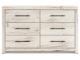 Rustic white finish over replicated reclaimed Oak grain with authentic touch. Cases feature a framed front and pilasters. Bed features a thick and heavy design. Contemporary handles in a dark pewter color finish. Side roller glides for smooth operating drawers. Drawer interiors finished with a replicated linen design. Slim USB charger located on the back of the nightstand tops. Queen (57) and king (58) headboards can attach to a bolt-on metal bed frame B100-31 or B100-66 respectively. Queen (57) panel headboard is capable of attaching a full sized metal bolt on bed frame. All storage footboards (54S,56S) require the B100-13 or B100-14 roll slats. Queen and king storage bed option features six drawers of storage. Headboards (57,58) are compatible with all footboard options (54,54S,56,56S). Mirror (36) has the versatility to be mounted on dresser or wall horizontally or vertically. Safety is a top priority, clothing storage units are designed to meet the most current standard for stability, ASTM F 2057 (ASTM International). Drawers extend out to accommodate maximum access to drawer interior while maintaining safety.