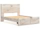 - Includes panel headboard, storage footboard, platform rails and roll slats