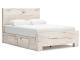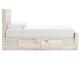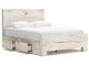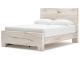 Rustic white finish over replicated reclaimed Oak grain with authentic touch. Cases feature a framed front and pilasters. Bed features a thick and heavy design. Contemporary handles in a dark pewter color finish. Side roller glides for smooth operating drawers. Drawer interiors finished with a replicated linen design. Slim USB charger located on the back of the nightstand tops. Queen (57) and king (58) headboards can attach to a bolt-on metal bed frame B100-31 or B100-66 respectively. Queen (57) panel headboard is capable of attaching a full sized metal bolt on bed frame. All storage footboards (54S,56S) require the B100-13 or B100-14 roll slats. Queen and king storage bed option features six drawers of storage. Headboards (57,58) are compatible with all footboard options (54,54S,56,56S). Mirror (36) has the versatility to be mounted on dresser or wall horizontally or vertically. Safety is a top priority, clothing storage units are designed to meet the most current standard for stability, ASTM F 2057 (ASTM International). Drawers extend out to accommodate maximum access to drawer interior while maintaining safety.