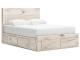 Rustic white finish over replicated reclaimed Oak grain with authentic touch. Cases feature a framed front and pilasters. Bed features a thick and heavy design. Contemporary handles in a dark pewter color finish. Side roller glides for smooth operating drawers. Drawer interiors finished with a replicated linen design. Slim USB charger located on the back of the nightstand tops. Queen (57) and king (58) headboards can attach to a bolt-on metal bed frame B100-31 or B100-66 respectively. Queen (57) panel headboard is capable of attaching a full sized metal bolt on bed frame. All storage footboards (54S,56S) require the B100-13 or B100-14 roll slats. Queen and king storage bed option features six drawers of storage. Headboards (57,58) are compatible with all footboard options (54,54S,56,56S). Mirror (36) has the versatility to be mounted on dresser or wall horizontally or vertically. Safety is a top priority, clothing storage units are designed to meet the most current standard for stability, ASTM F 2057 (ASTM International). Drawers extend out to accommodate maximum access to drawer interior while maintaining safety.