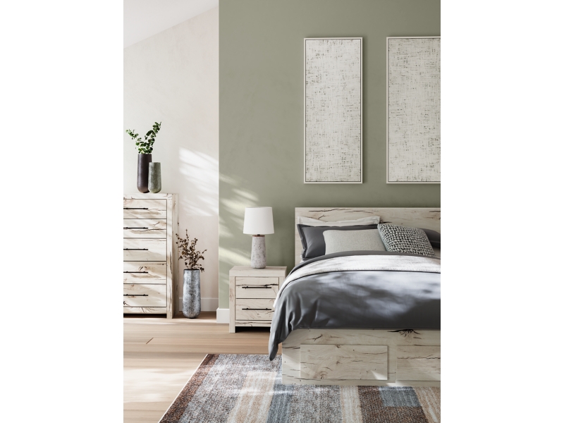 A fresh take on country living, this queen panel storage bed strikes the perfect balance between farmhouse and contemporary. Its rustic white finish and replicated reclaimed oak grain merge effortlessly with the hearty, clean-lined look we love today. Six storage drawers help you keep clothes organized and put clutter in its place. You’ll love how this bed's simple design transforms your bedroom into a harmonious haven.