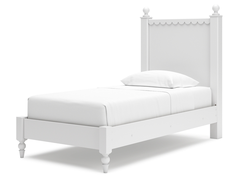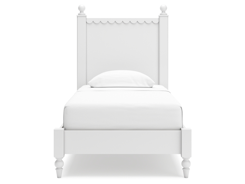 Make morning or bedtime that much more magical with this twin panel bed. Charmingly cute with its scalloped detailing, it appeals to both her sense of playful whimsy and your love for modern design. And the bed's crisp white finish gives you the versatility to pair it with existing decor.