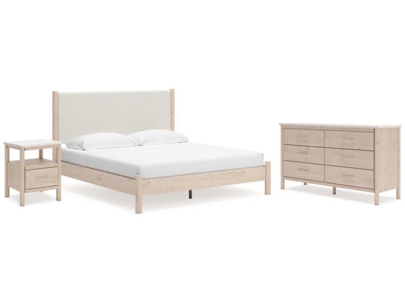 Signature Design by Ashley Cadmori King Upholstered Panel Bed, Dresser and Nightstand - B2615B11
