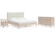 Smooth, light finish with replicated oak grain accented with a replicated white marble top. Beds and cases feature round post leg details. Cases accented with champagne colored finished handles. Side roller glides for smooth operating drawers. Drawer interiors are lined with a replicated linen design for a clean, finished look. Both USB and wireless charging options are provided with the nightstands. Nightstand (91) features ambient lighting under the top. Upholstered headboard options (57,58,87) feature a white textural fabric and wooden vertical posts. Headboards (57,58,87) attached to footboards (54,56,84) respectively. Footboards (54,56,84) require the use of B100-12, B100-13 or the B100-14 roll slats. Safety is a top priority, clothing storage units are designed to meet the most current standard for stability, ASTM F 2057 (ASTM International). Drawers extend out to accommodate maximum access to drawer interior while maintaining safety. Minor assembly required.