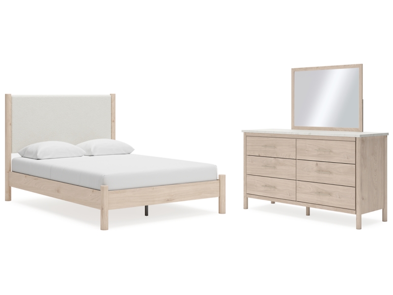 Signature Design by Ashley Cadmori Queen Upholstered Panel Bed, Dresser and Mirror - B2615B5