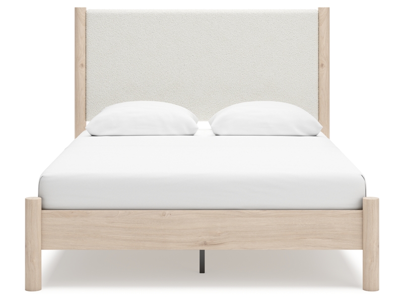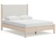 Smooth, light finish with replicated oak grain accented with a replicated white marble top. Beds and cases feature round post leg details. Cases accented with champagne colored finished handles. Side roller glides for smooth operating drawers. Drawer interiors are lined with a replicated linen design for a clean, finished look. Both USB and wireless charging options are provided with the nightstands. Nightstand (91) features ambient lighting under the top. Upholstered headboard options (57,58,87) feature a white textural fabric and wooden vertical posts. Headboards (57,58,87) attached to footboards (54,56,84) respectively. Footboards (54,56,84) require the use of B100-12, B100-13 or the B100-14 roll slats. Safety is a top priority, clothing storage units are designed to meet the most current standard for stability, ASTM F 2057 (ASTM International). Drawers extend out to accommodate maximum access to drawer interior while maintaining safety. Minor assembly required.