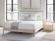 Smooth, light finish with replicated oak grain accented with a replicated white marble top. Beds and cases feature round post leg details. Cases accented with champagne colored finished handles. Side roller glides for smooth operating drawers. Drawer interiors are lined with a replicated linen design for a clean, finished look. Both USB and wireless charging options are provided with the nightstands. Nightstand (91) features ambient lighting under the top. Upholstered headboard options (57,58,87) feature a white textural fabric and wooden vertical posts. Headboards (57,58,87) attached to footboards (54,56,84) respectively. Footboards (54,56,84) require the use of B100-12, B100-13 or the B100-14 roll slats. Safety is a top priority, clothing storage units are designed to meet the most current standard for stability, ASTM F 2057 (ASTM International). Drawers extend out to accommodate maximum access to drawer interior while maintaining safety. Minor assembly required.