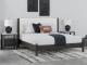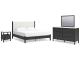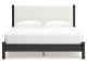 This king upholstered panel bed reflects your sophisticated approach to boho style. Crafted with both form and function in mind, its fresh white fabric beautifully contrasts the matte black finish. The versatile design suits all-neutral spaces or blends with your favorite pops of color. It’s inviting, yet posh. Luxe, yet laid-back. With this bed, your free-spirited vibe meets modern design. Dresser, mirror and nightstand included.