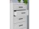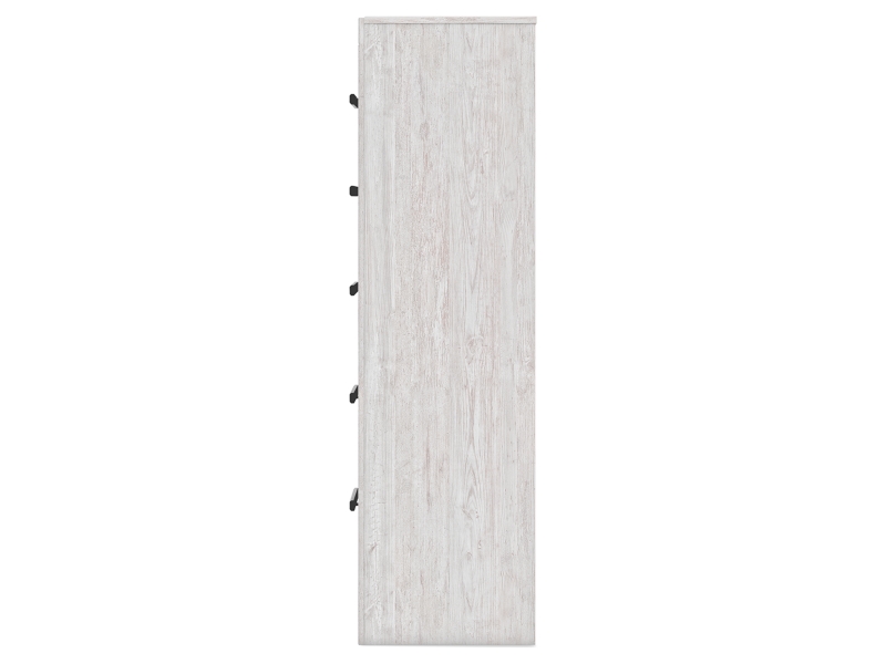 Whitewash replicated worn through paint with authentic touch. Cases feature a framed front and pilasters. Large black color handles. Side roller glides for smooth operating drawers. Safety is a top priority, clothing storage units are designed to meet the most current standard for stability, ASTM F 2057 (ASTM International). Drawers extend out to accommodate maximum access to drawer interior while maintaining safety. Minor assembly required.